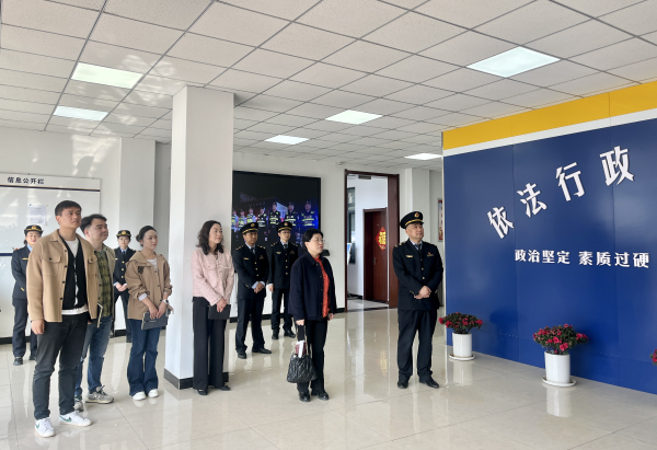 田区法院一行实地参观了支队荣誉墙、老兵之家、法治讲堂、道德讲堂、法治研学基地、法治教育实践基地,观摩了出租汽车监管平台和“8212328交通失物找寻处”“8312328交通司乘纠纷调解处”处置流程,现场了解平台建设运行、智慧服务和科技执法等情况。