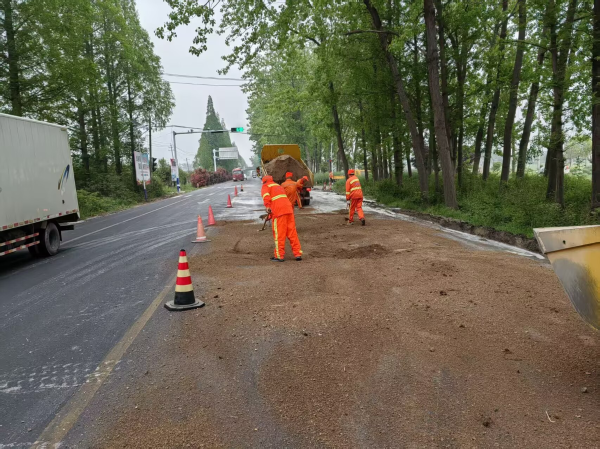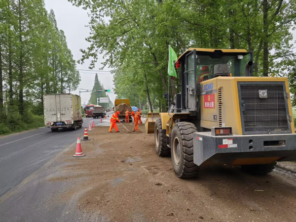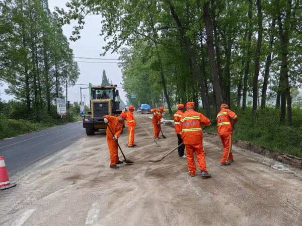 4月16日,S102合阜路K155+300至K155+500路段突发车辆交通事故,装载的工业原料不慎倾洒路面,造成路面湿滑,严重威胁过往车辆行驶安全。险情发生后,淮南市公路管理服务中心凤台分中心启动应急响应,迅速组织抢险力量赶赴现场,通过科学规范的处置措施,及时消除安全隐患,全力保障公路安全畅通。