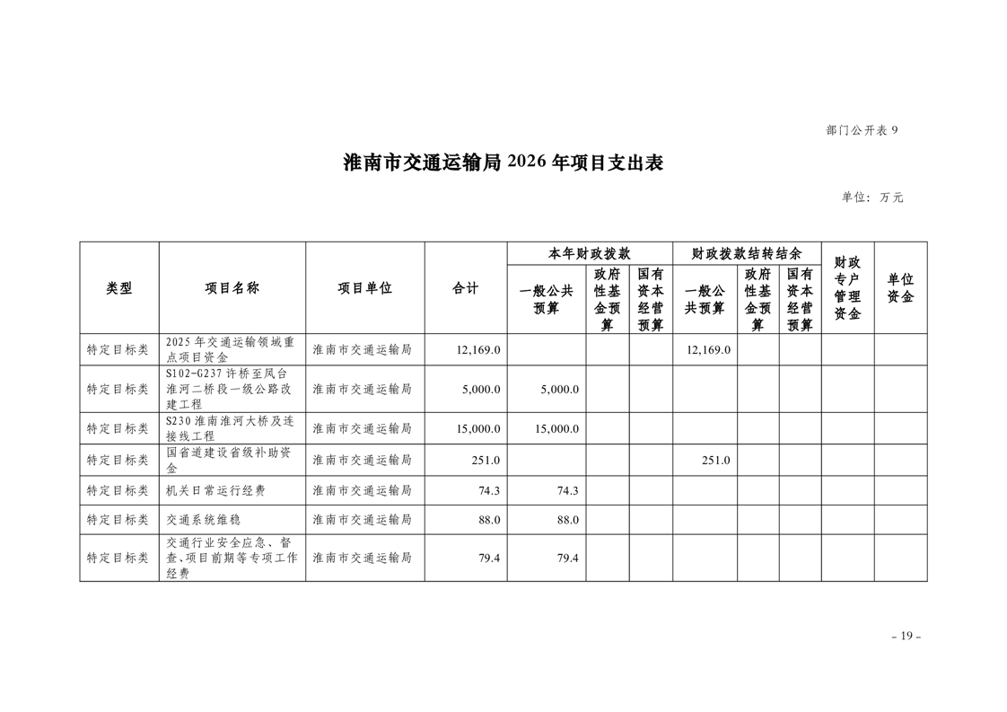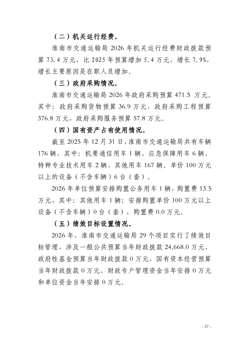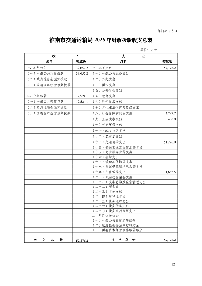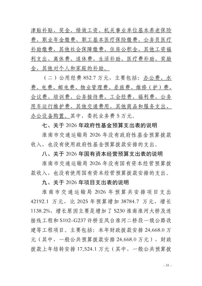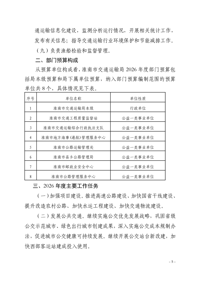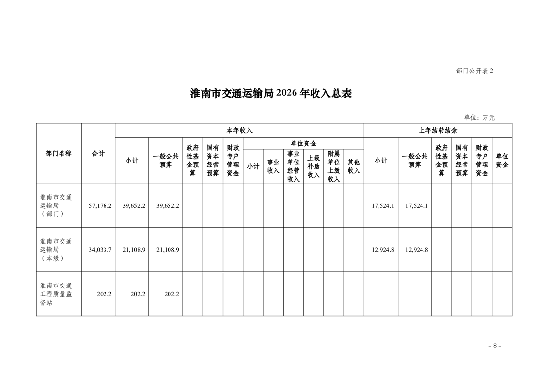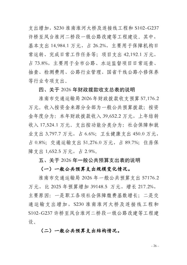 淮南市交通运输局2026年部门预算