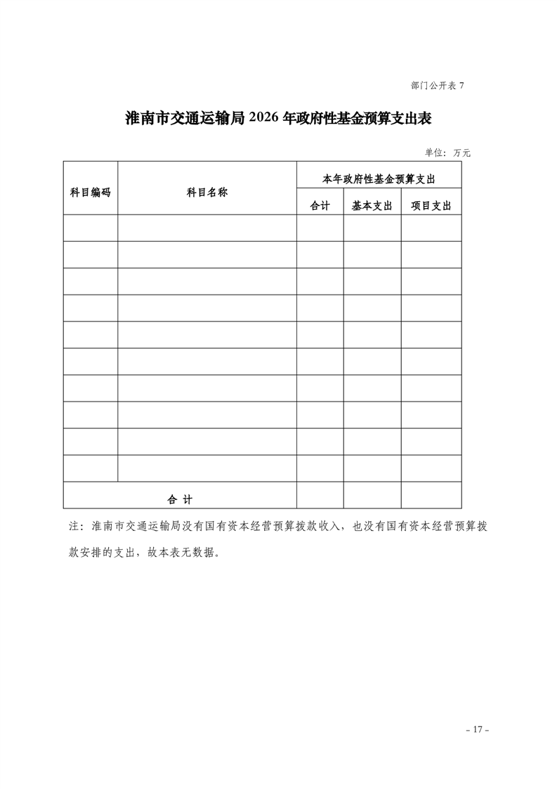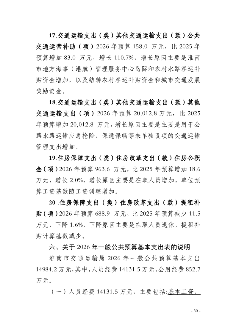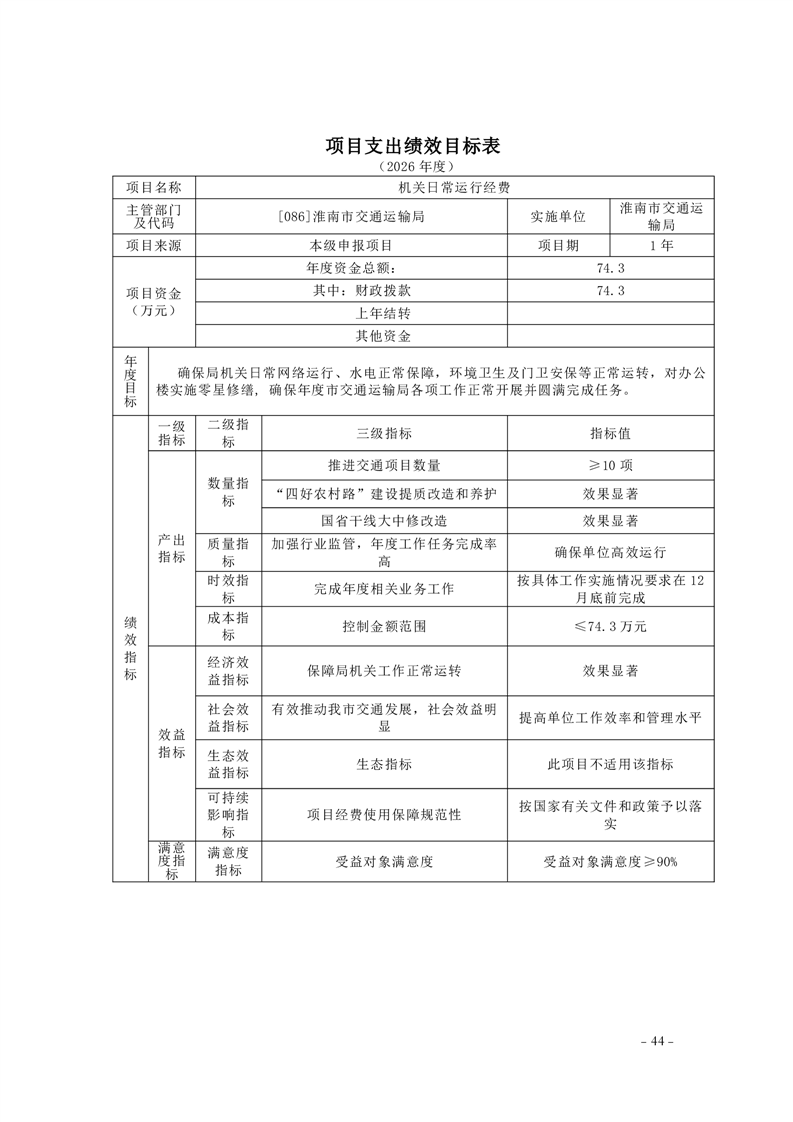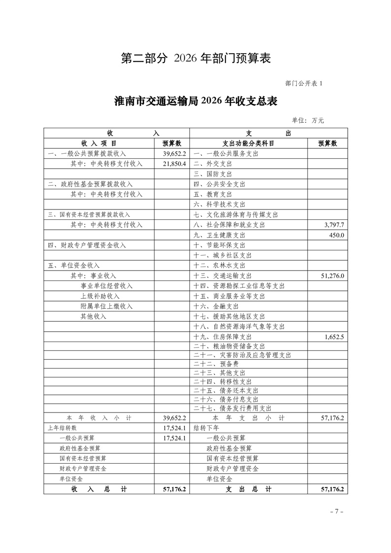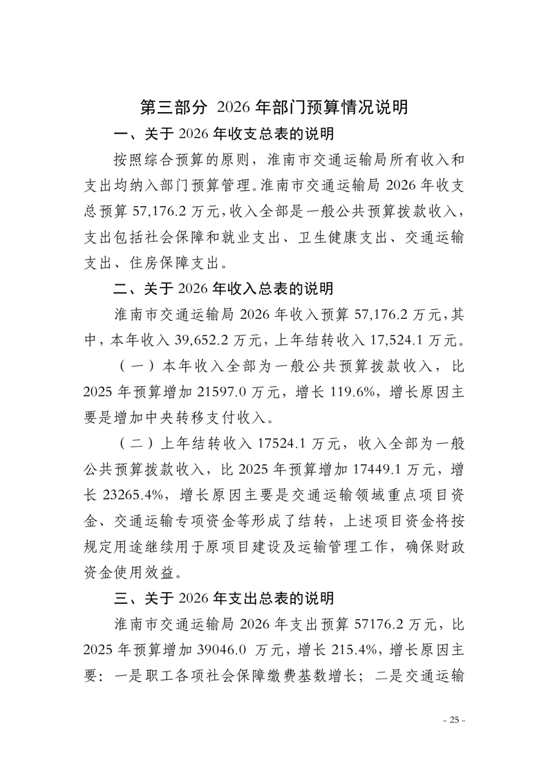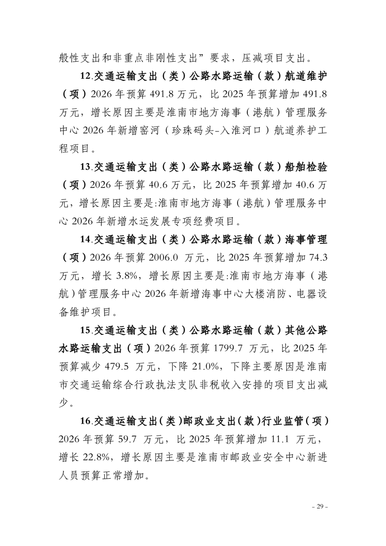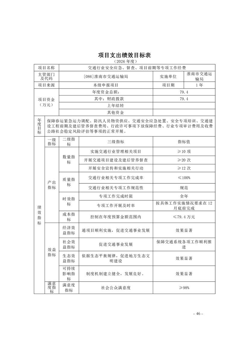 淮南市交通运输局2026年部门预算