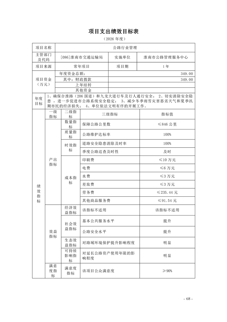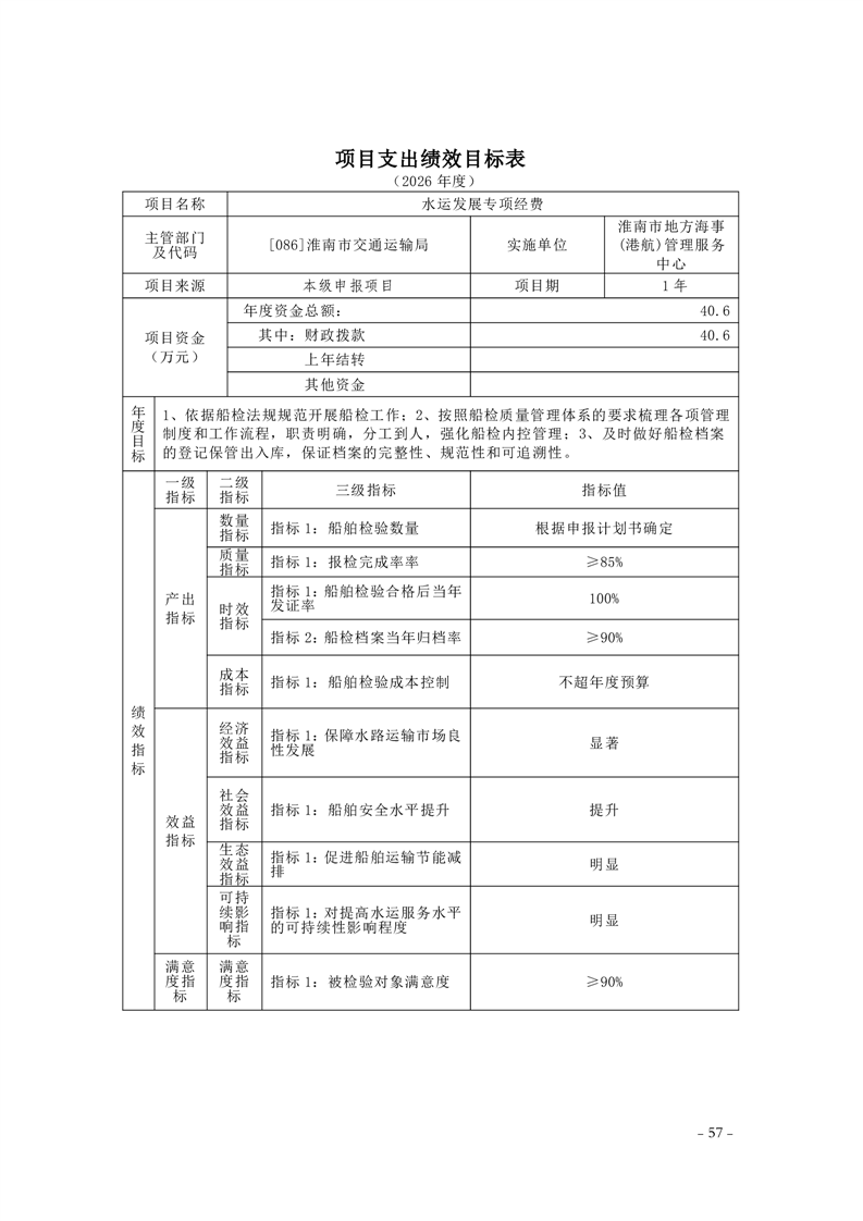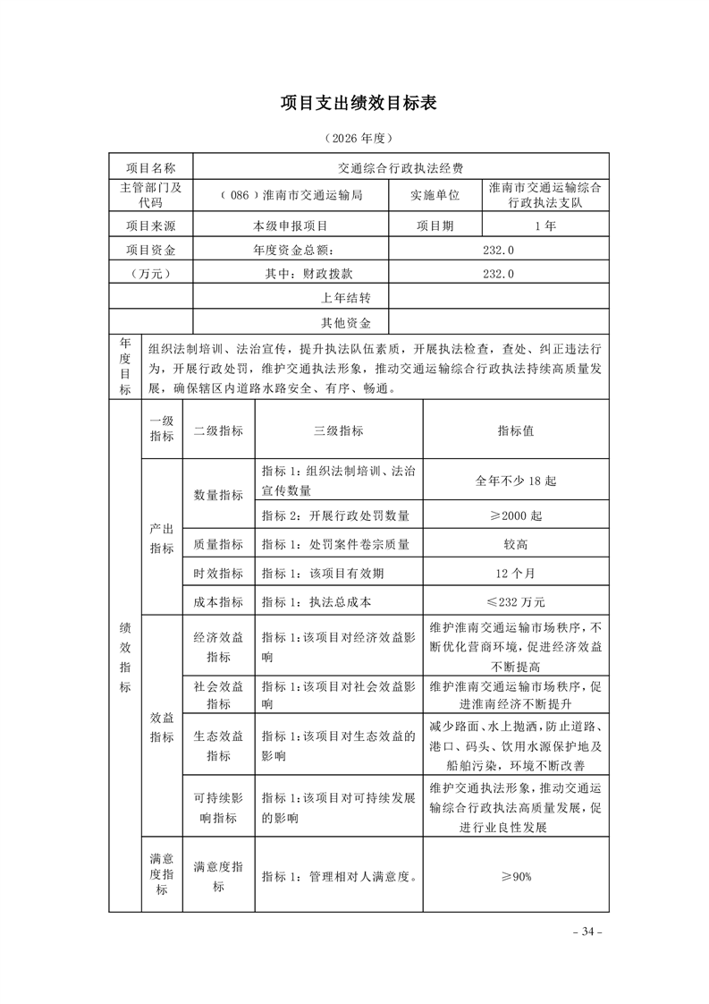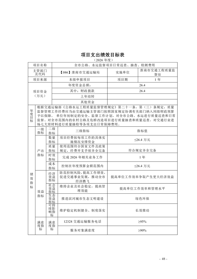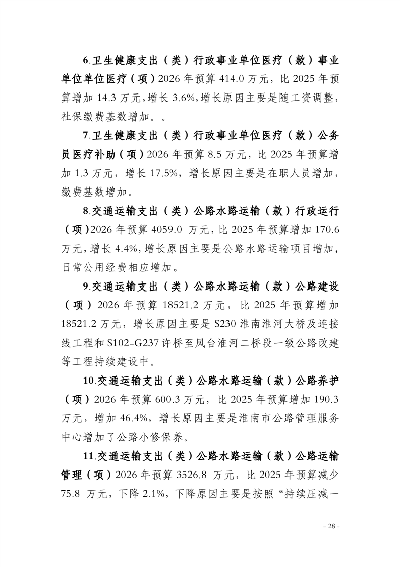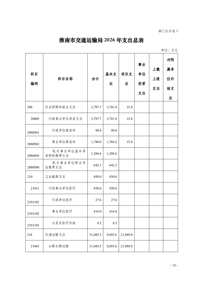 淮南市交通运输局2026年部门预算
