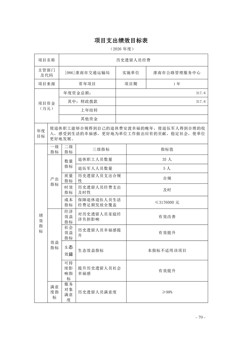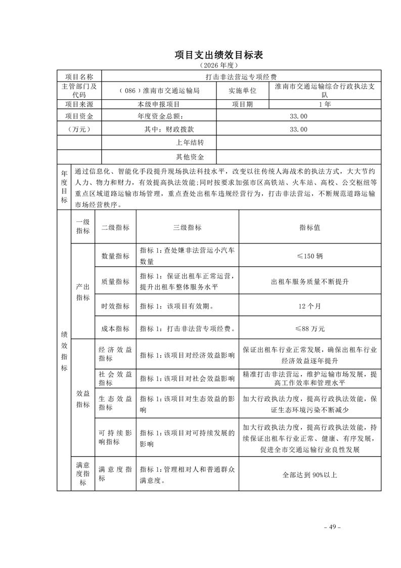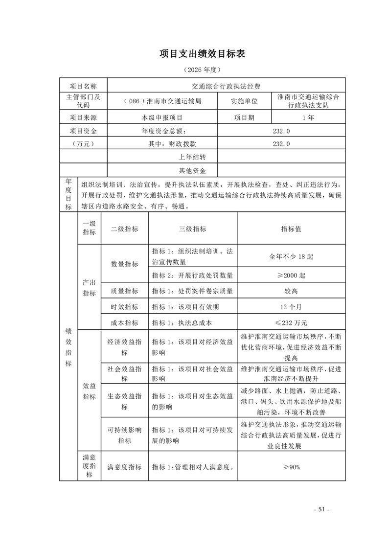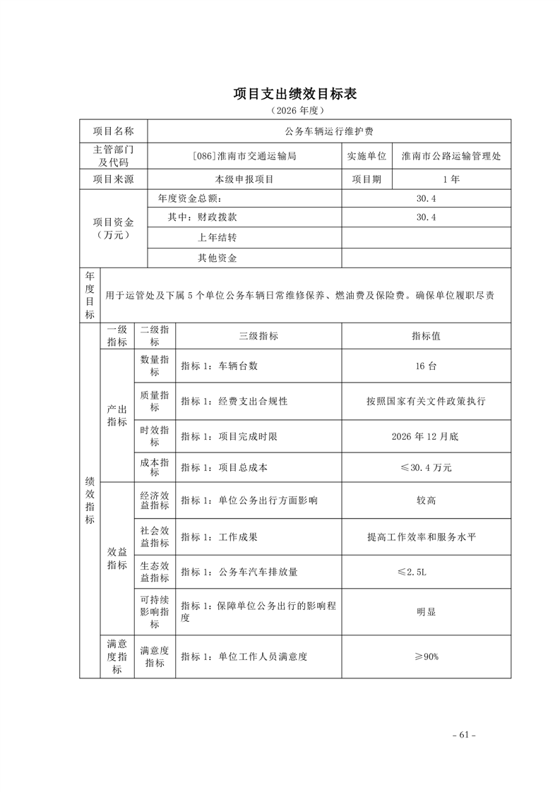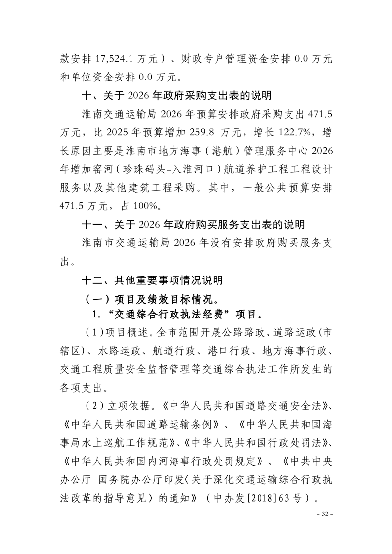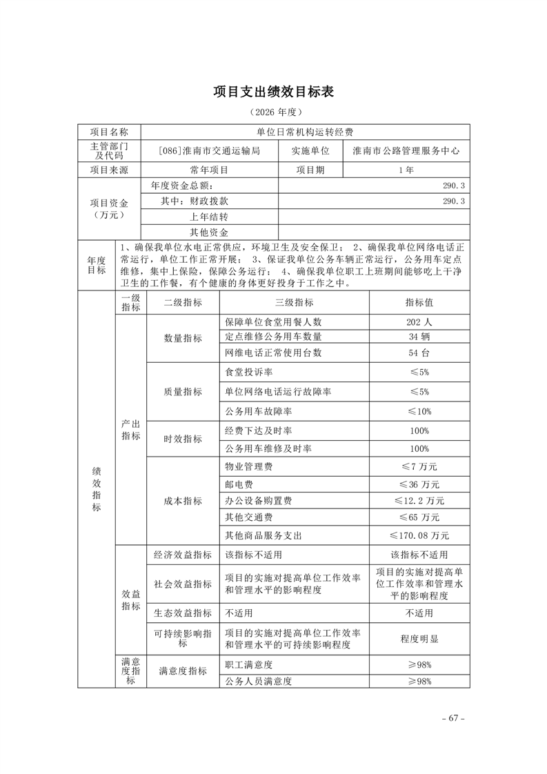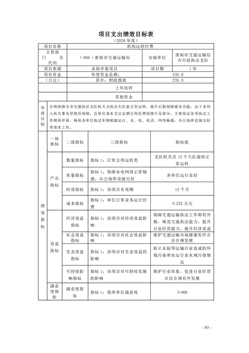 淮南市交通运输局2026年部门预算
