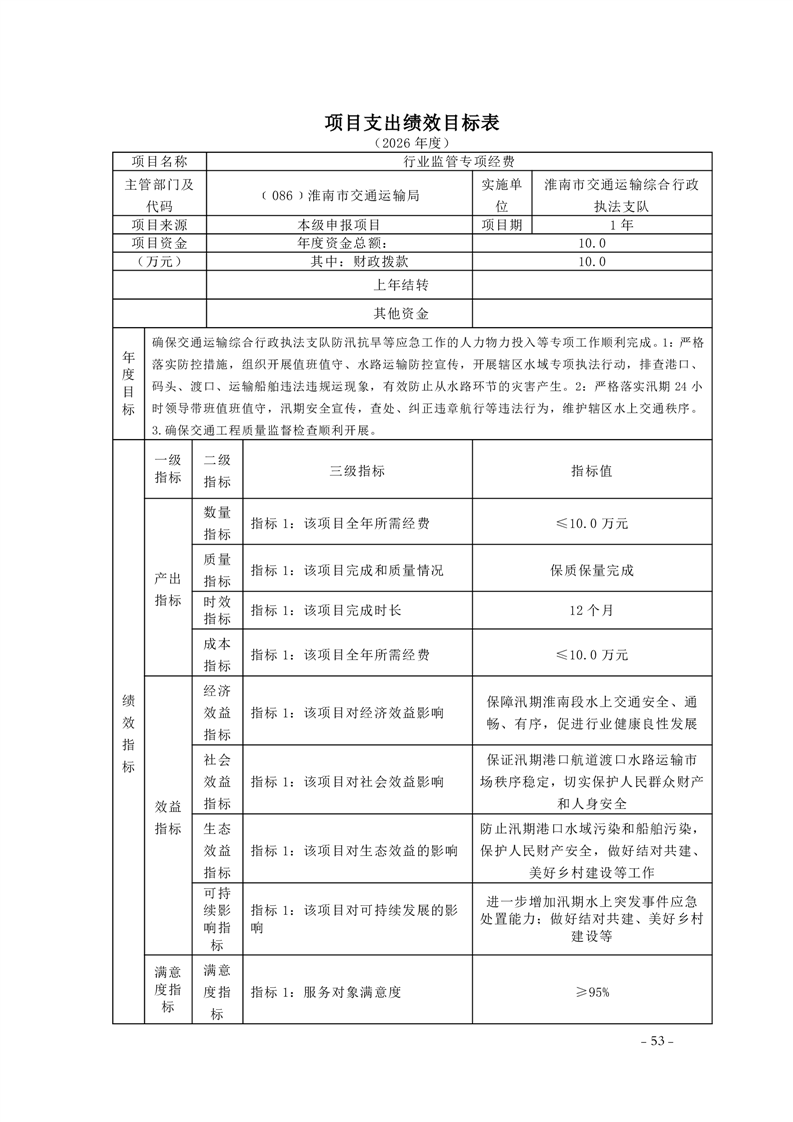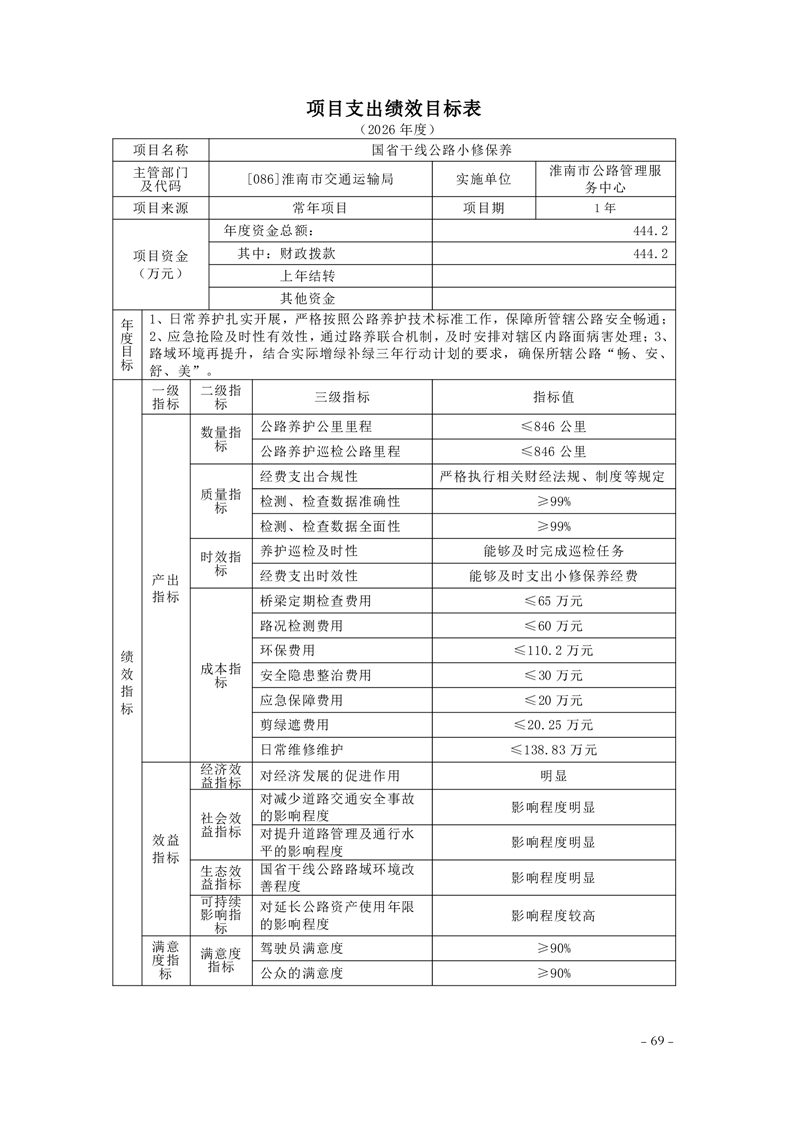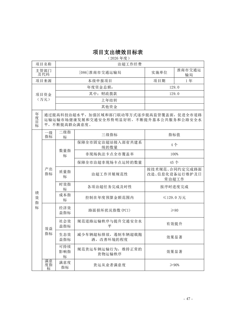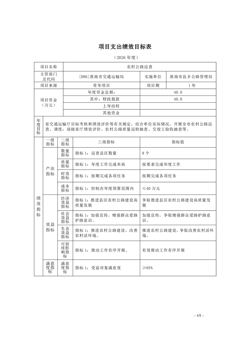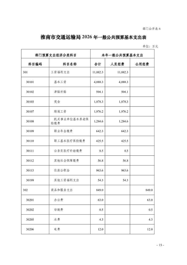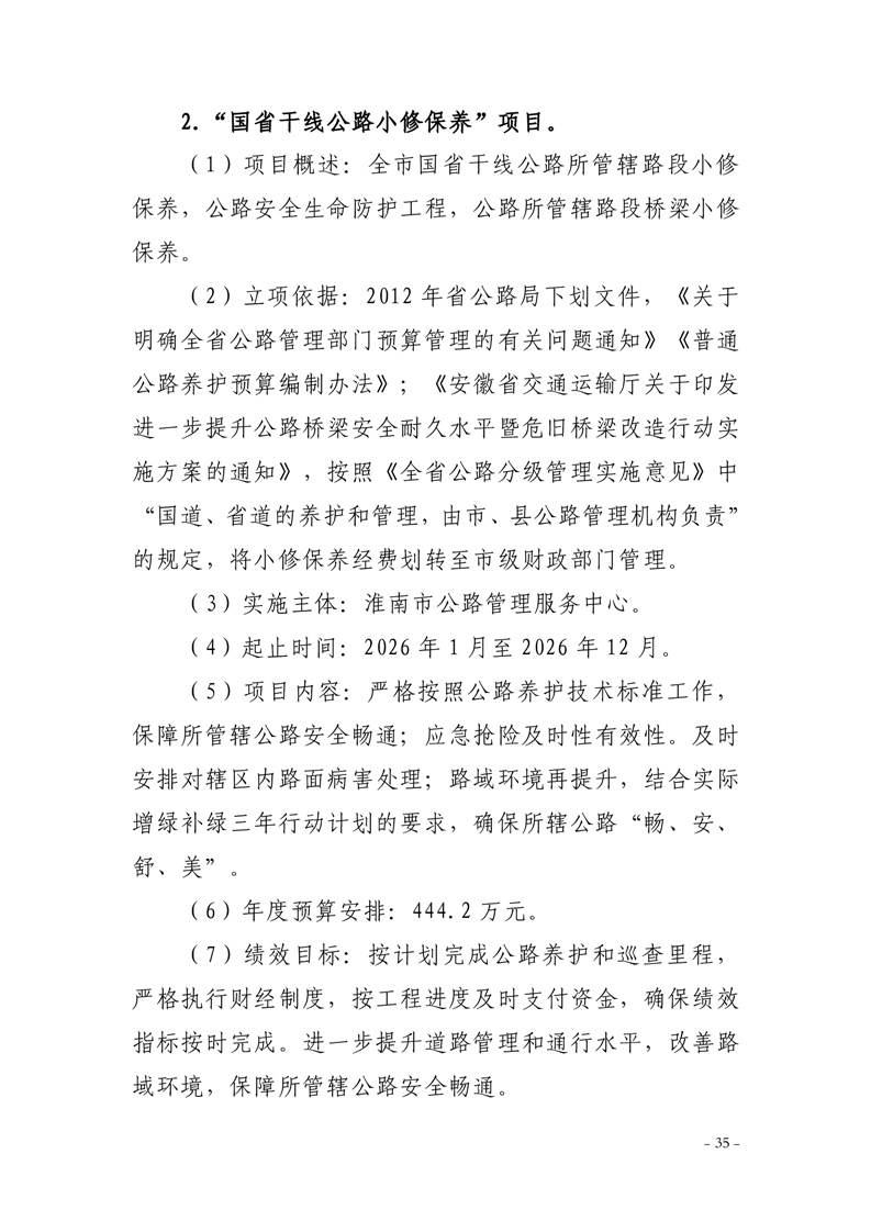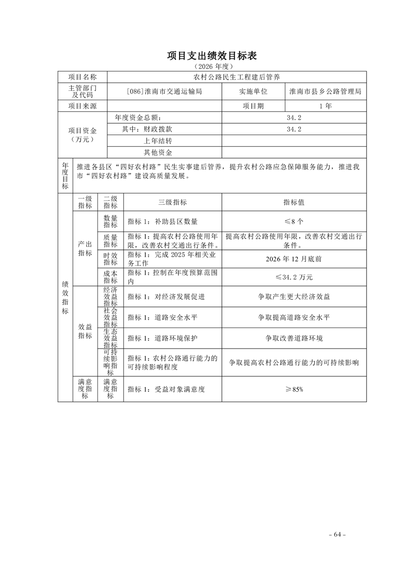 淮南市交通运输局2026年部门预算