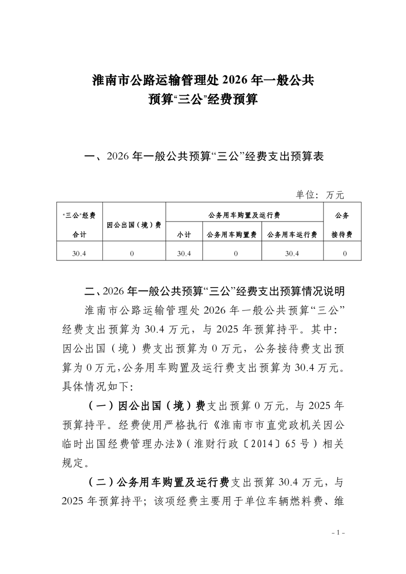 淮南市公路运输管理处2026年一般公共预算“三公”经费预算