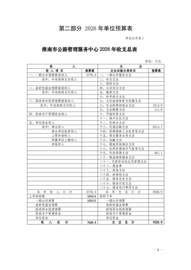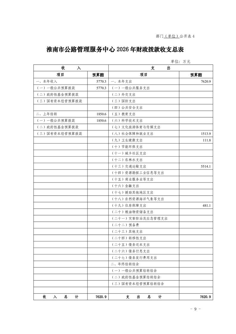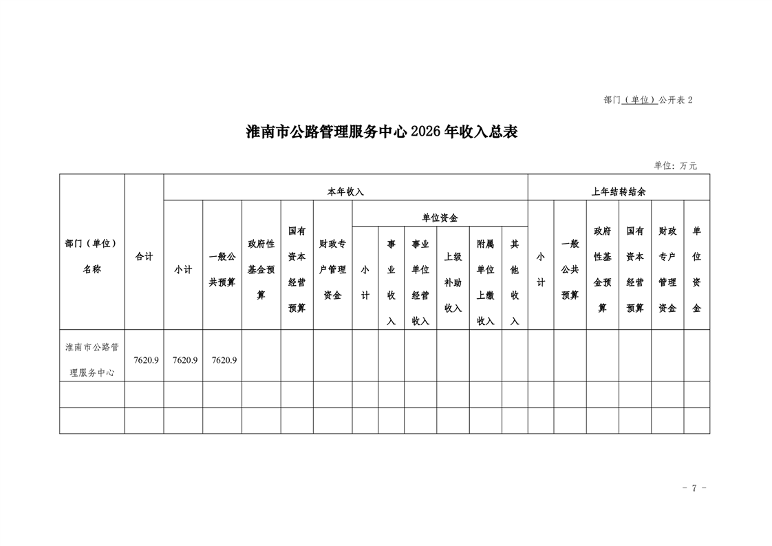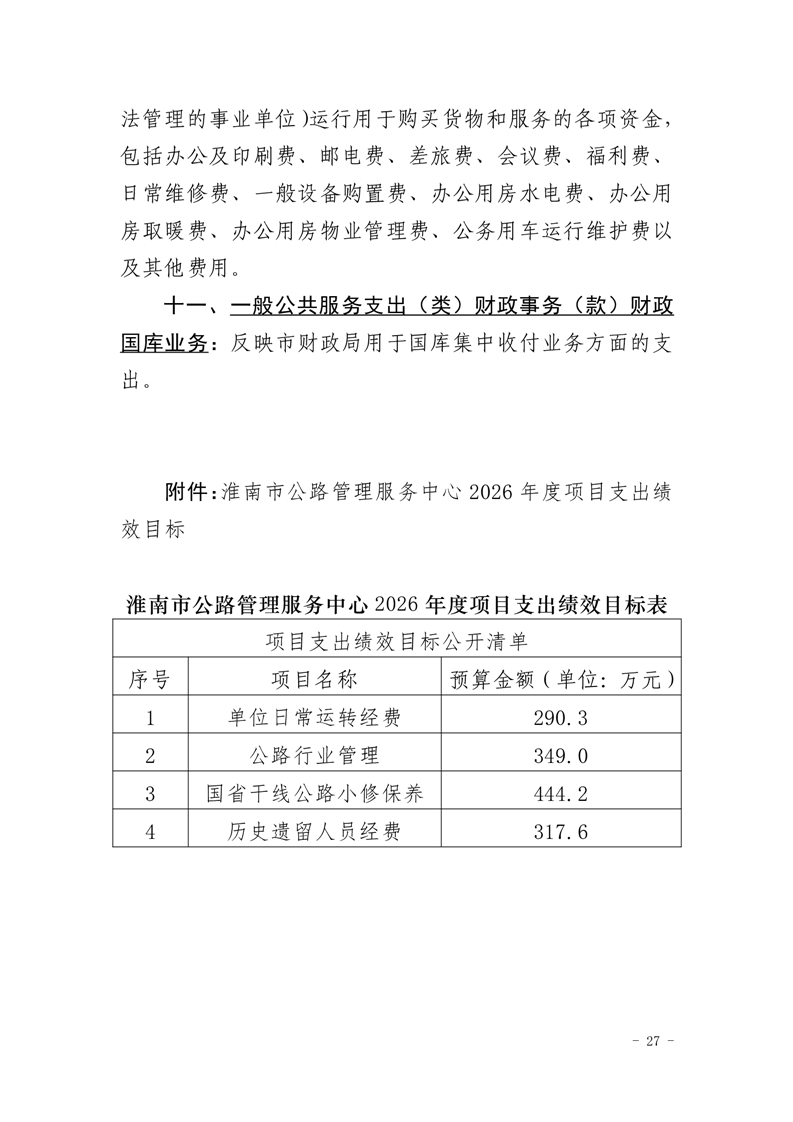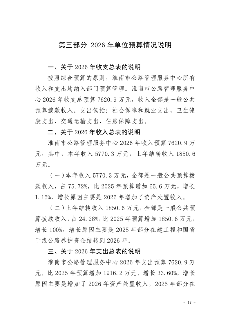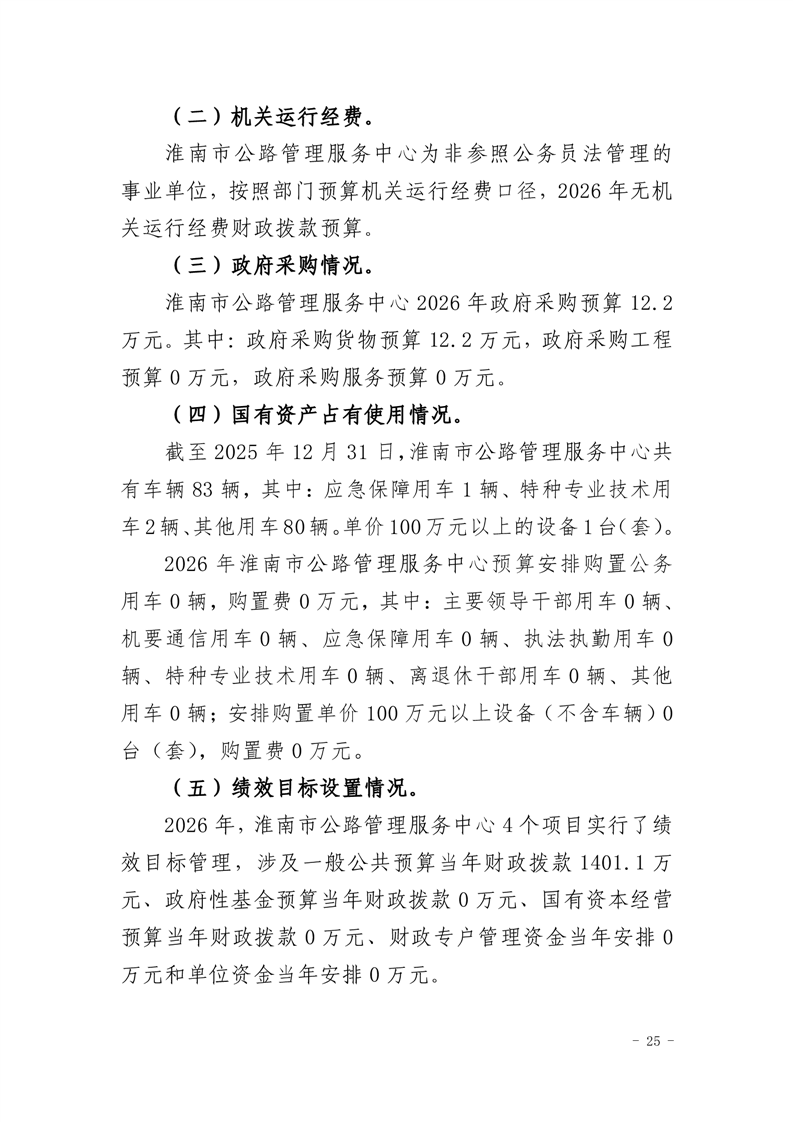 淮南市公路管理服务中心2026年单位预算