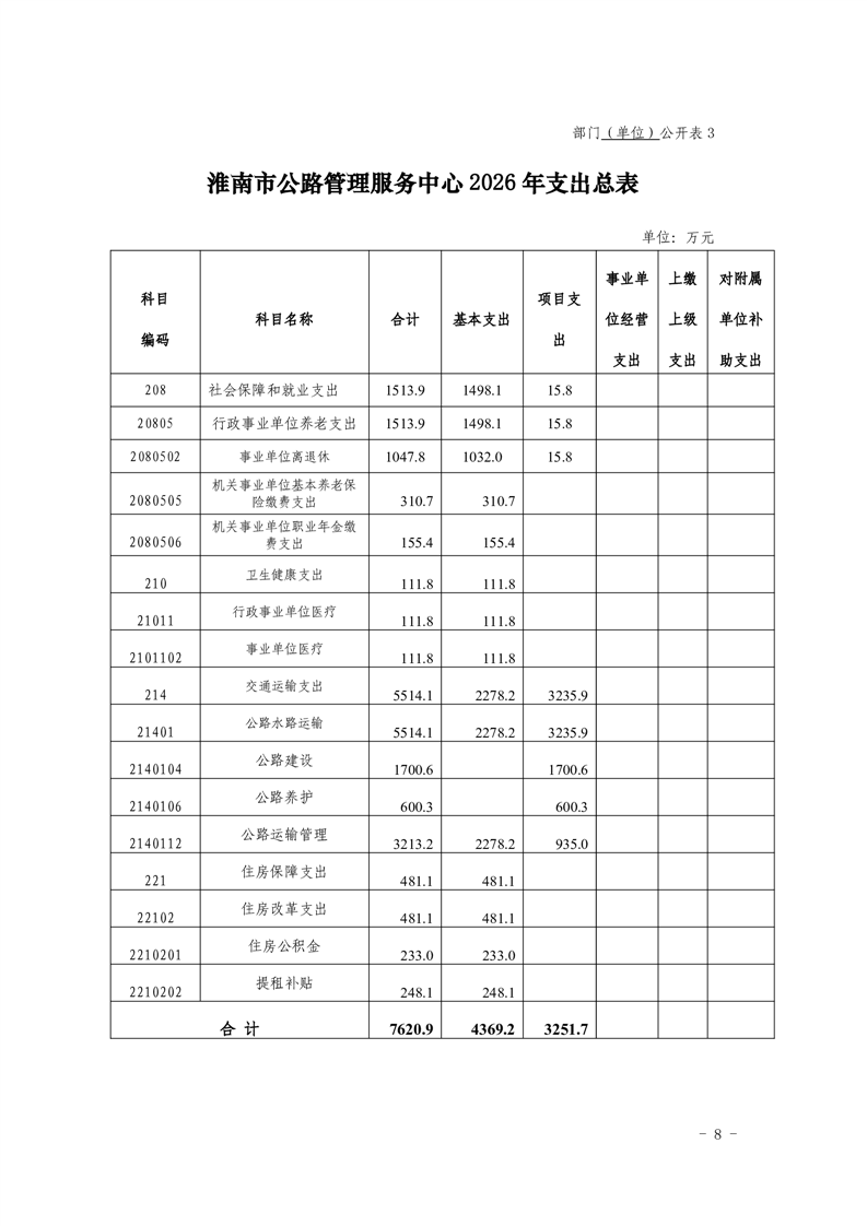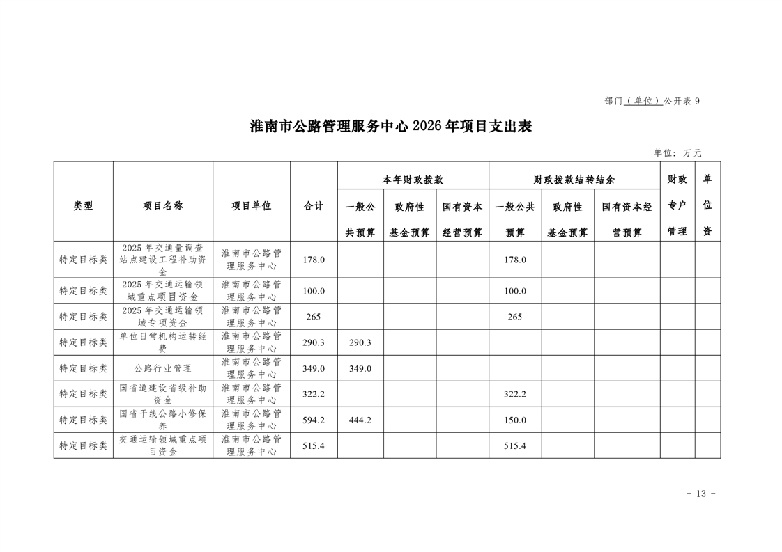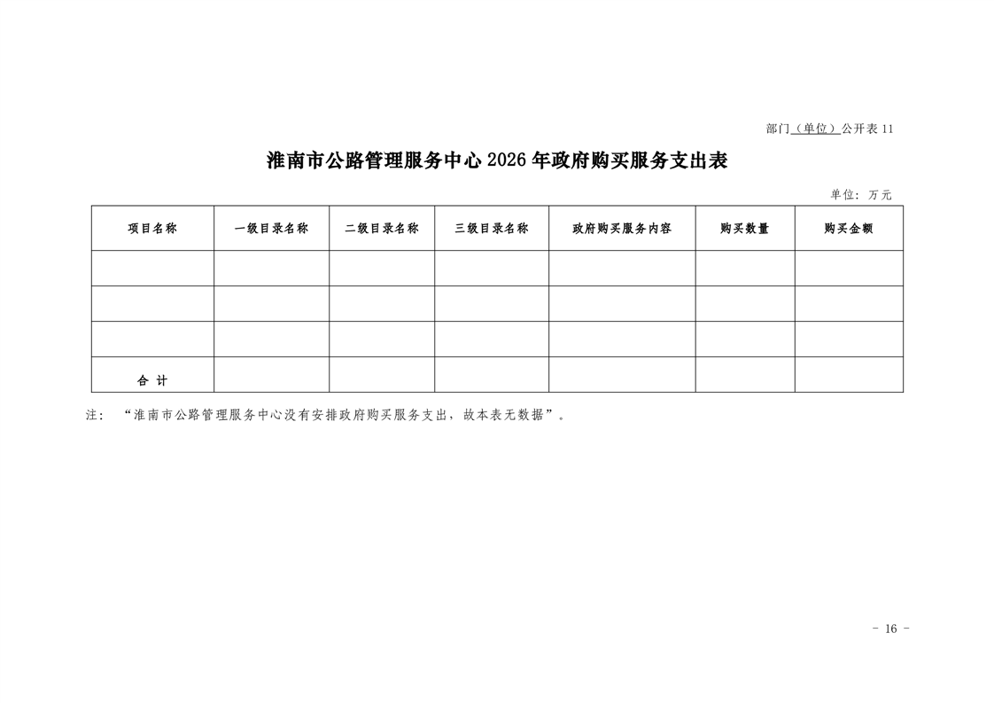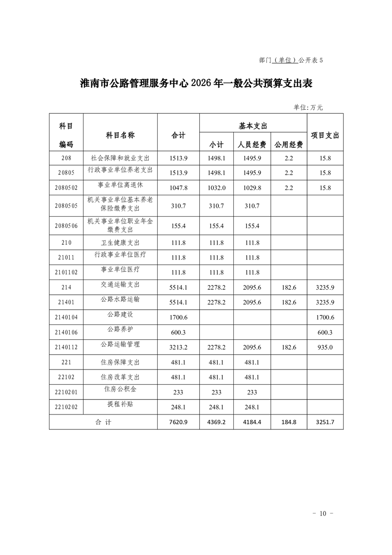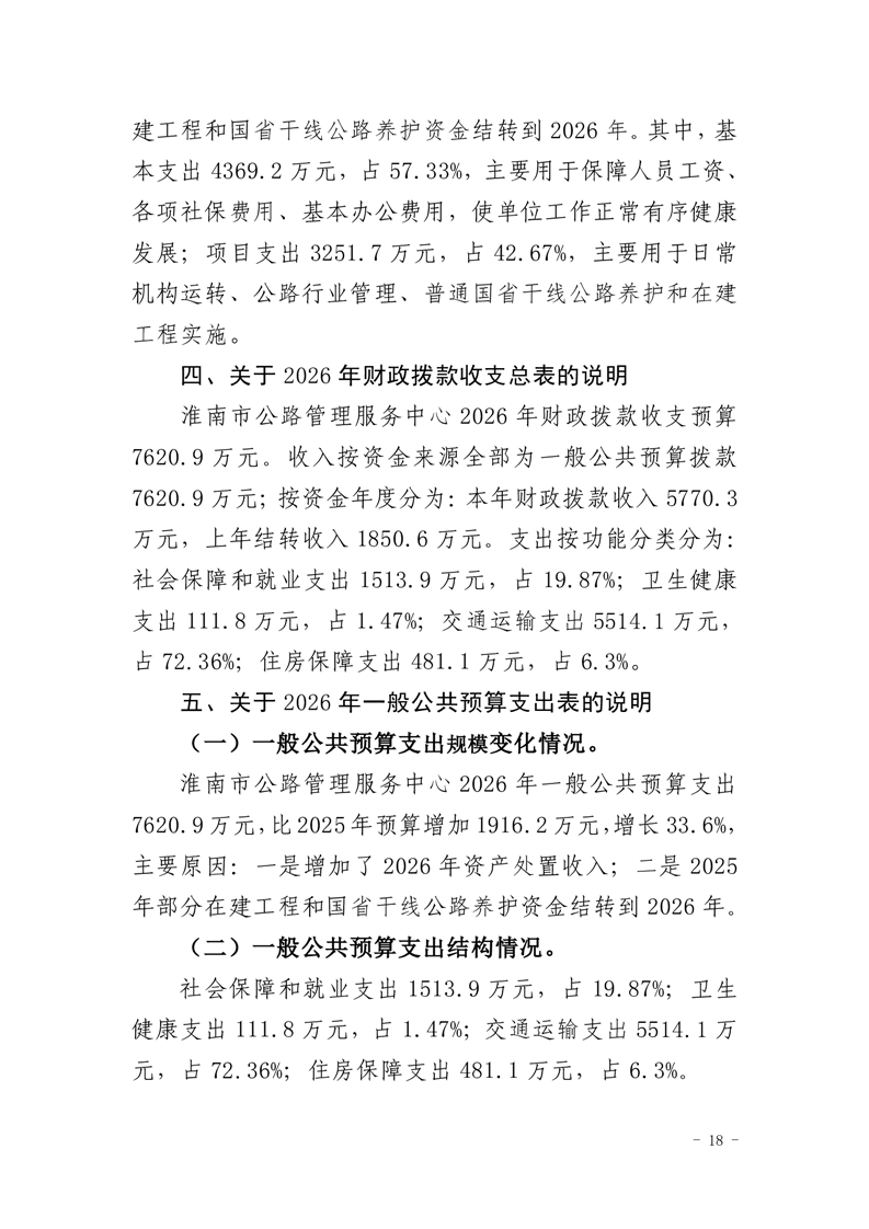 淮南市公路管理服务中心2026年单位预算