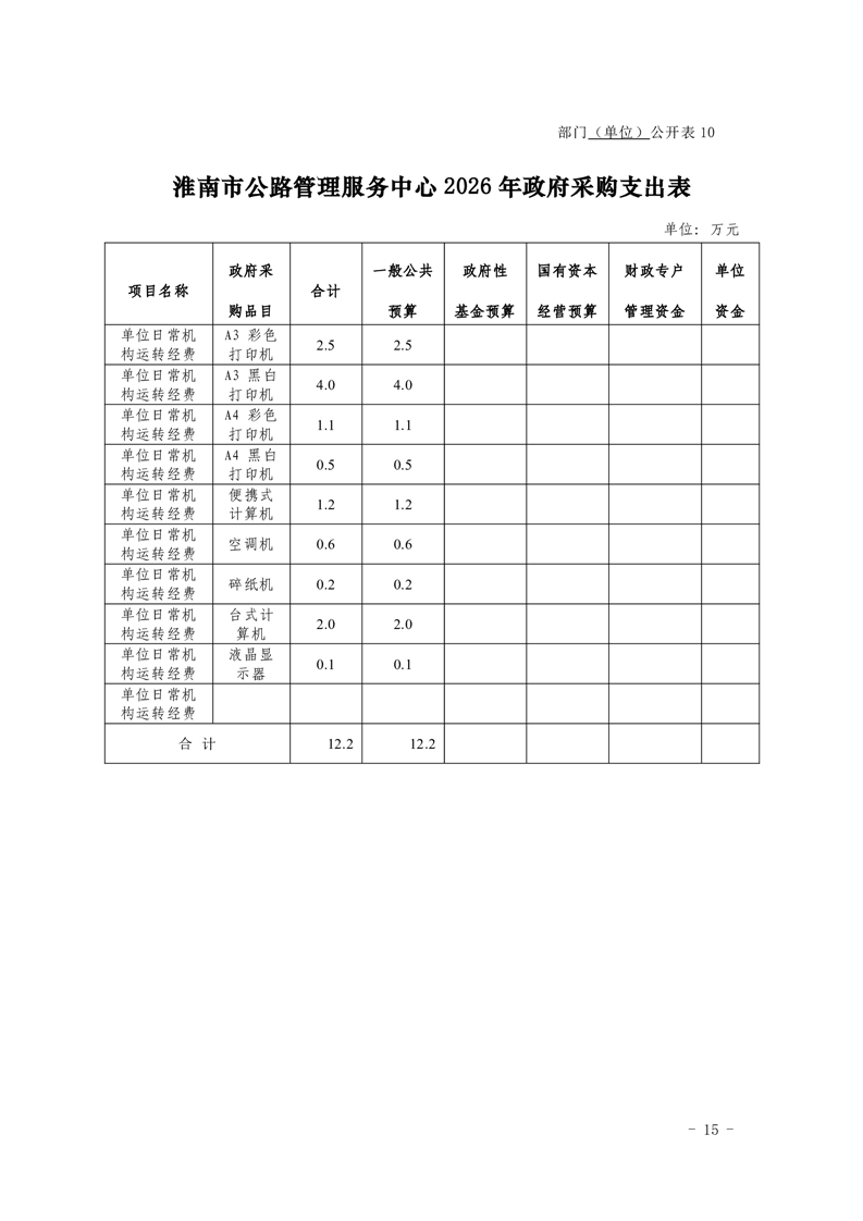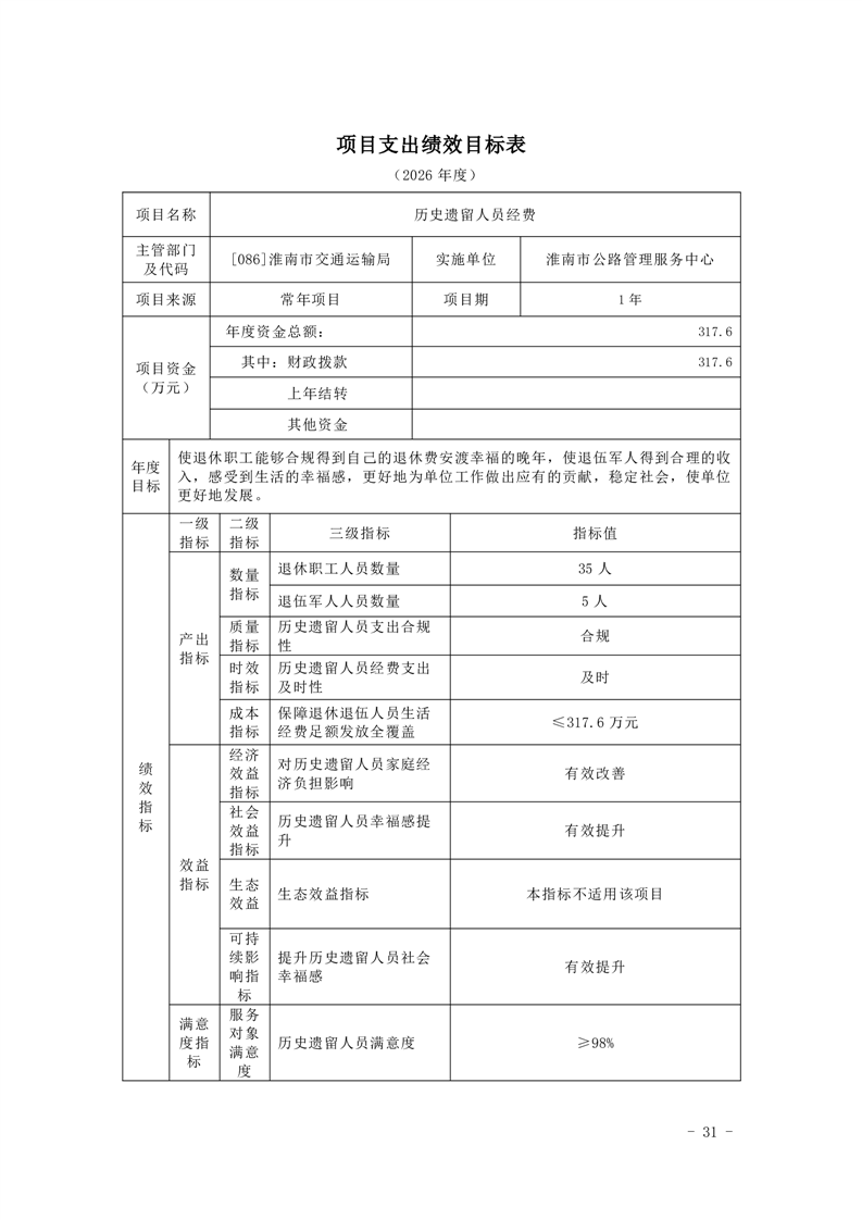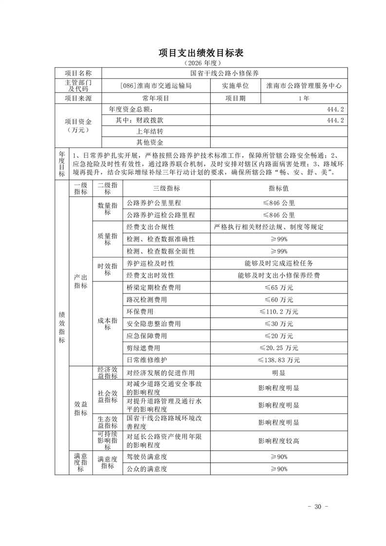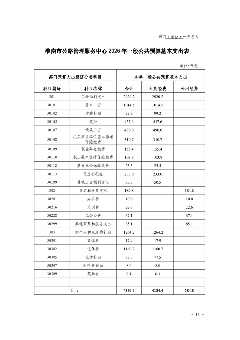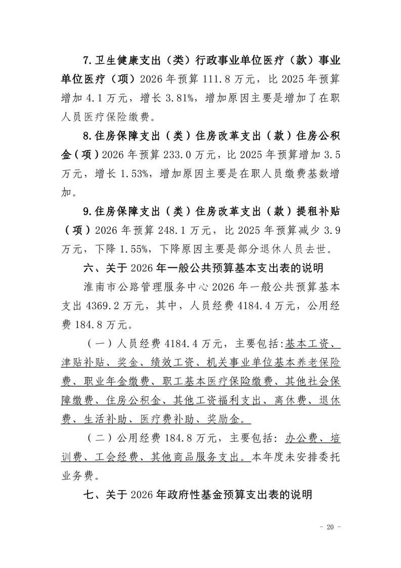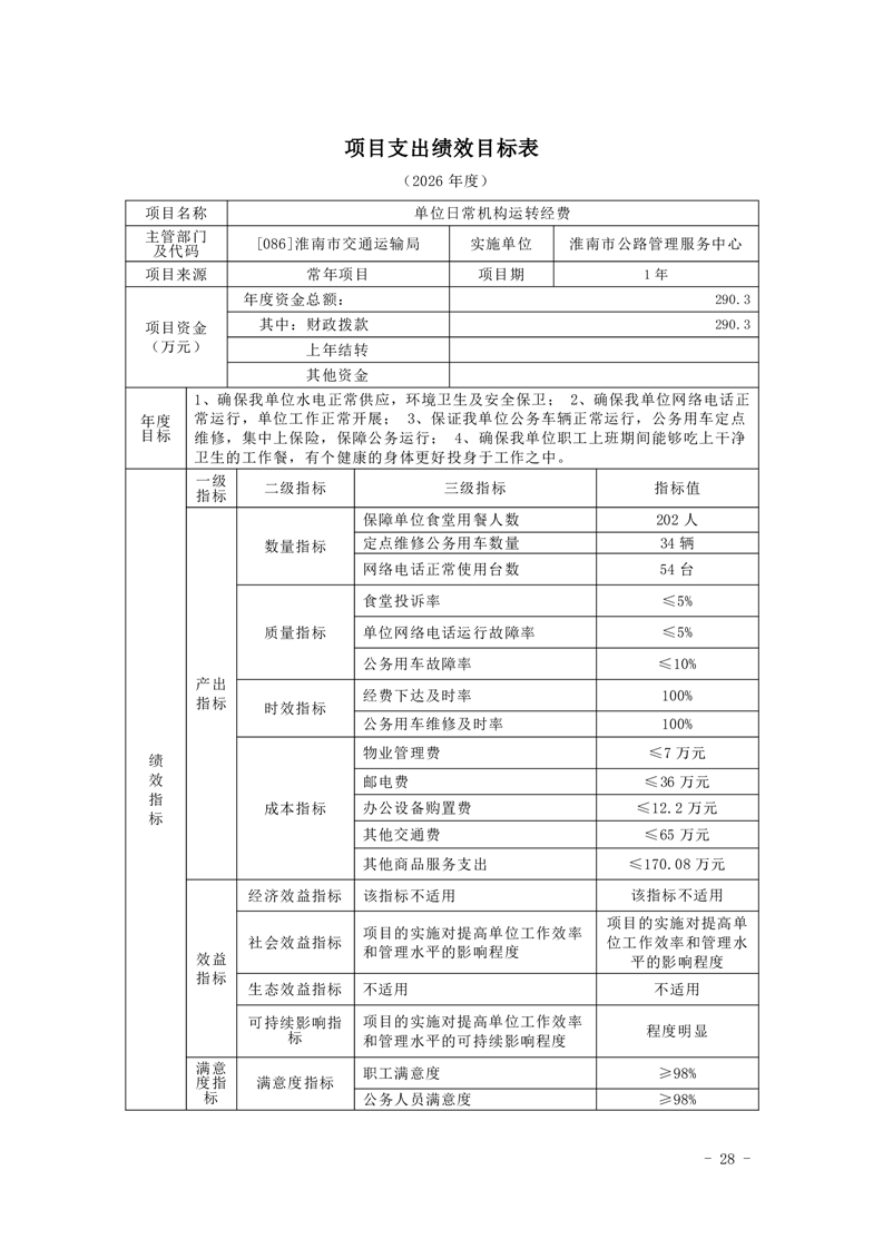 淮南市公路管理服务中心2026年单位预算